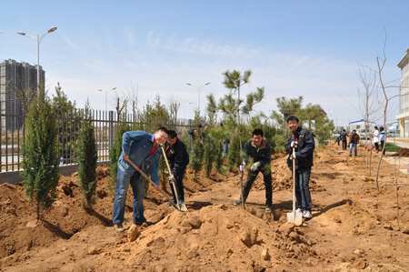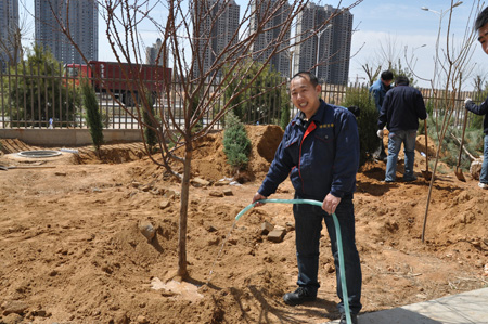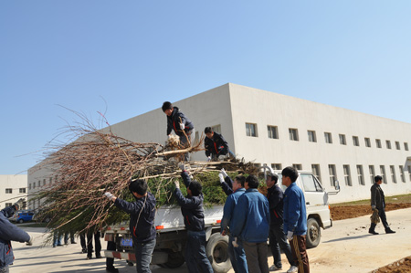 2013年4月14日,博硕光电全体员工在项目部李志军副总经理的号召下,早早来到公司,一起参与到植树绿化活动中。
