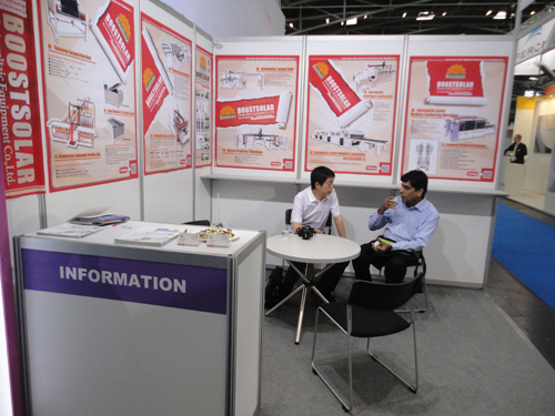 2013年6月19日-21日,迄今为止规模较大、影响较深的太阳能专业展览交易会——Intersolar Europe 2013德国慕尼黑国际太阳能展,于慕尼黑新国际展览中心盛大开幕。此次展会聚集了世界各地的太阳能企业共两千余家,参观观众近六万人次,秦皇岛博硕光电作为国内太阳能设备制造行业的翘楚,携公司最近研发的太阳能电池自动生产线设备应邀而来,其先进的设计理念与技术指标吸引了众多业内人士的目光,成为本届展会上一抹亮丽的风景。